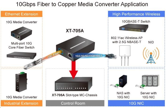 Planet XT-705A, konvertor 10G/5G/2.5G/1G/100M / miniGBIC SFP+ 10GBASE-X