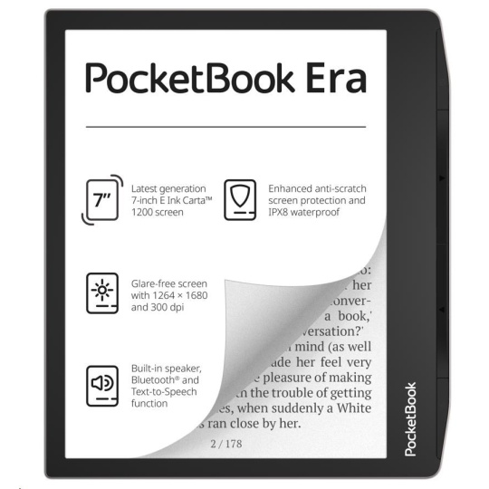 Samozřejmostí je vestavěný reproduktor, díky němuž můžete poslouchat audioknihy. Pocket Book Era umí také nahlas předčítat texty až v 26 jazycích. Prostřednictvím Bluetooth si k ní můžete připojit bezdrátová sluchátka a další praktické doplňky.