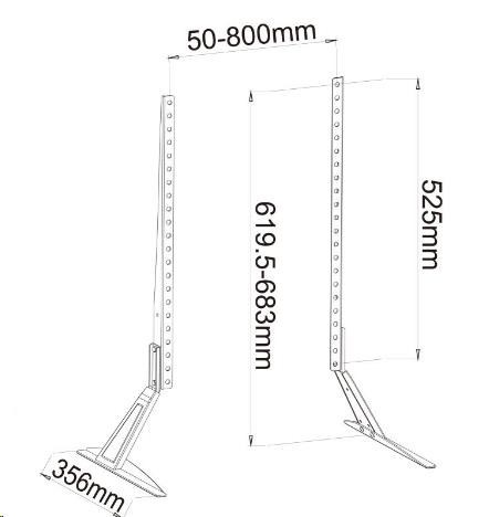 Nožky na televizi s nosností 50kg, na Tv 37" až 65", výškové nastavení Stabilní podstava na televize, univerzální, vhodné na všechny typy, velikosti a značky televizorů s podporou VESA standardu. Výškové nastavení, nosnost 50kg, barevné provedení černé, záruka 3 roky. Balení obsahuje sadu instalačního materiálu. Podstavec na televizi, nožky na Tv Ergosolid Castor 1 Technické údaje: nosnost 50kg podpora VESA standardů 100x100 až 800x500 doporučená úhlopříčka Tv 37" až 65" výškové nastevení 620mm až 683mm šířka podstavců 356mm protiskluzové podložky minimalistický design stabilní, bezpečný materiál ocel instalační materiál barevné provedení černé záruka 3 roky Ergosolid Castor 1 podporuje VESA standardy: VESA 100x100 VESA 200x100 a 100x200 VESA 200x200 VESA 300x100 a 100x300 VESA 300x200 a 200x300 VESA 300x300 VESA 400x200 a 200x400 VESA 400x300 a 300x400 VESA 400x400 VESA 600x400 VESA 800x400 VESA 800x500.