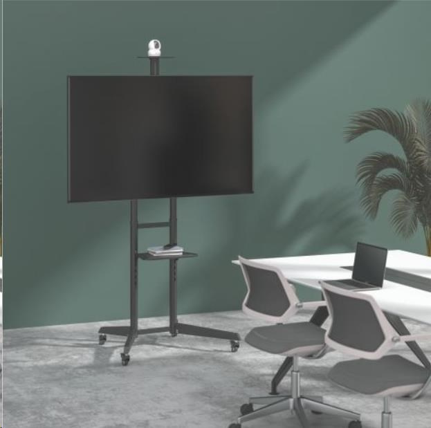 Všestranný pojízdný stojan Brateck T1040T je určen pro instalaci TV s plochou obrazovkou s úhlopříčkami od 37“ do 70“ a hmotností až 50 kg. Stojan poskytuje stabilní podporu a díky integrovaným kolečkům s možností aretace zároveň umožňuje snadné a bezpečné přemístění dle potřeby. Montážní deska pro upevnění TV je nastavitelná ve čtyřech různých výškových úrovních, jednoduchá změna náklonu TV v rozsahu +5°~-12° pak umožňuje nastavení optimálního pozorovacího úhlu. Stojan je navíc vybaven jednou výškově stavitelnou poličkou na kameru s nosností 5 kg a jednou výškově nastavitelnou poličkou na příslušenství s nosností 5 kg. Díky tomuto příslušenství je stojan vhodný pro pořádání telekonferencí, ale také pro využití při kancelářských a školních prezentacích, nebo při domácí zábavě.