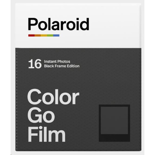 Go Film Double Pack 16 photos - Black Frame Každé balení obsahuje 16 barevných instantních fotografií s lesklým černým rámečkem připravených pro světlo světa. Exkluzivně pro použití s fotoaparáty Polaroid Go. Velikost: 66,6 × 53,9 mm / velikost snímku: 47 × 46 mm Černý rámeček ASA 640 Vyvolání fotografií do 10–15 min Nejlépe uchovávat v chladničce Expozice 16 Velikost filmu 46x47mm, 1,85x1,81” Typ filmu Instantní ISO filmu 640.