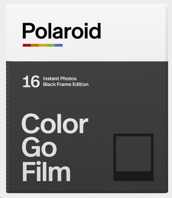 Go Film Double Pack 16 photos - Black Frame Každé balení obsahuje 16 barevných instantních fotografií s lesklým černým rámečkem připravených pro světlo světa. Exkluzivně pro použití s fotoaparáty Polaroid Go. Velikost: 66,6 × 53,9 mm / velikost snímku: 47 × 46 mm Černý rámeček ASA 640 Vyvolání fotografií do 10–15 min Nejlépe uchovávat v chladničce Expozice 16 Velikost filmu 46x47mm, 1,85x1,81” Typ filmu Instantní ISO filmu 640.