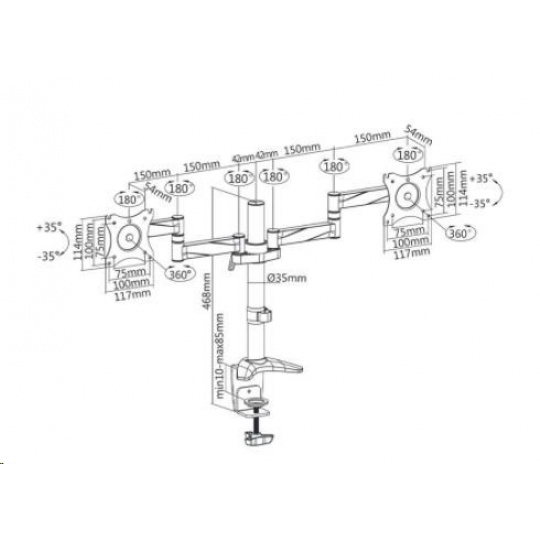 Kancelářský stolní držák na 2 monitory Fiber Mounts M71C4 Stolní držák na 2 monitory 13-27", otočný, sklopný, výškově polohovatelný, funkce pivot Stolní držák pro zavěšení 2 monitorů o úhlopříčce 13 až 27". Plně nastavitelný - otáčení do stran, náklon, výškově polohovatelný, funkce pivot, korekce roviny obrazovky. Nosnost 16kg, VESA standard 75x75 a 100x100. Stolní držák na 2 monitory v krásném designu. Fiber Mounts M71C4 je kvalitní a velmi pěkný stolní držák na 2 monitory, plně nastavitelnýStolní držák na 2 monitory do kanceláře pracovny nebo domácnosti Fiber Mount M71C4 Technické údaje: nosnost 16kg (2x8kg) podporuje VESA standard 75x75 a 100x100 doporučujeme na monitory o velikosti 13 až 27" obě ramena jsou plně otočná do stran obě ramena umožňují nastavení vzdálenosti od nosníku funkce PIVOT - horizontální nebo vertikální otočení obrazovek korekce roviny obrazovek 2 typy uchycení na stolovou desku uchycení na stolovou desku o síle 10 až 85mm celková výška 400mm úchytky na kabeláž barva stříbrná, nosník chromový záruka 2 roky.