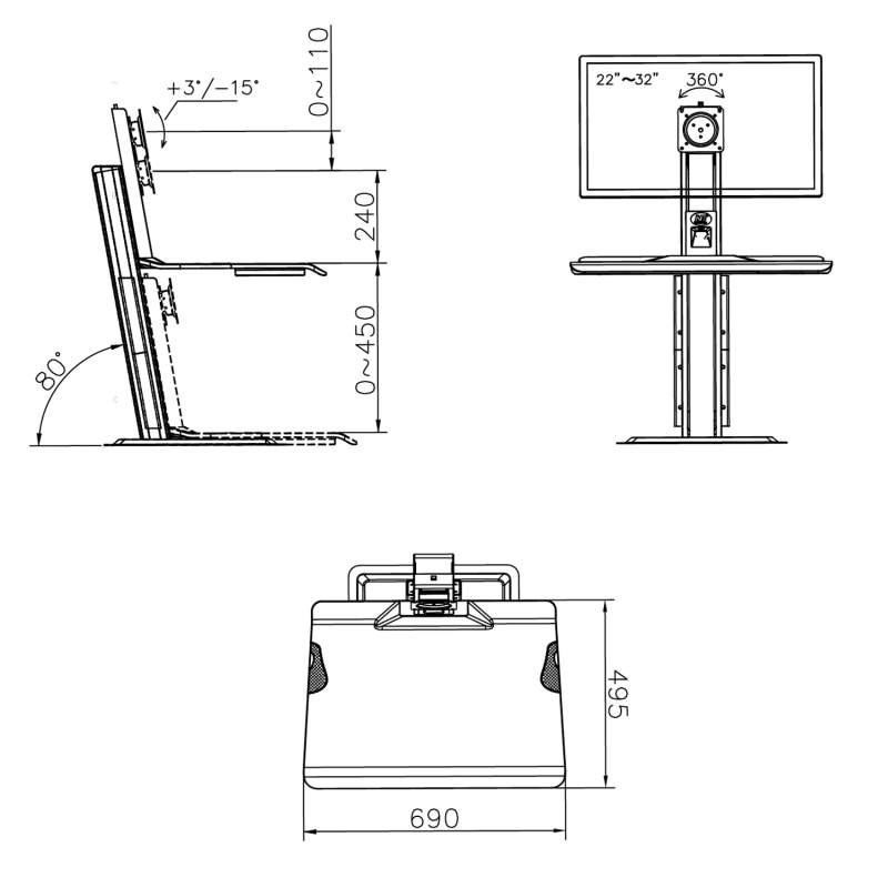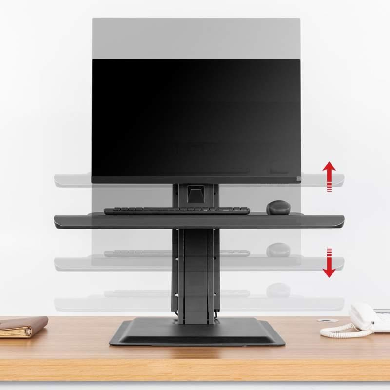 Pracovní stanice NB ST15B Ergonomická pracovní stanice - stolní stojan na monitor 19-32", s policí na klávesnici a myš, výškové nastavení pro práci vestoje nebo v sedě, úprava výšky, sklonu a rotace monitoru, VESA 75x75 a 100x100, nosnost 11kg Profesionální pracovní stanice pro moderní kanceláře - rychlá a snadná změna pozice pro práci vsedě nebo vestoje díky pokročilému systému změny výšky. Stojan podporuje VESA standardy 75x75 a 100x100, umožní Vám rychlou změnu výšky +/- 45cm. Nastavení polohy samotného monitoru: úprava výšky od police +/- 11cm, náklon +3°/-15°, horizontální nebo vertikální otočení. Nosnost 11kg. Profesionální konstrukce, estetický dizajn, luxusní černé provedení. Systém pro vedení kabeláže. Záruka 5 let. Pracovní stanice pro snadnou změnu pozice monitoru a klávesnice s myší pro práci v sedě nebo vestoje, nejvyšší kvalita, top dizajn - Fiber Mounts ST15B Technické údaje: nosnost 11kg na monitory s úhlopříčkou 19-32" podpora VESA standardů 75x75 a 100x100 rychlé nastavení výšky pro práci v sedě nebo vestoje +/- 45cm pokročilý systém výškového polohování - snadno, rychle, bez nářadí výškové polohování samotného monitoru 110mm police na klávesnici a myš s rozměry 690x495mm základna o rozměrech 450x480mm (minimální potřebný prostor na stole) nastavení náklonu monitoru +3° / -15° systém pro skryté vedení kabeláže esteticky ukrytý USB port profesionální pracovní stanice nejvyšší kvality vynikající stabilita krásný dizajn v černém provedení záruka 5 let Stolní pracovní stanice do kanceláře pro práci vsedě nebo vestoje - Fiber Mounts ST15B Pracovní stanice NB ST15B podporuje VESA standardy: VESA 75x75 VESA 100x100 Pracovní stanice, profesionální, nastavení výšky monitoru od police na klávesnici s myší - Fiber Mounts ST15B Pracovní stanice pro práci vestoje nebo vsedě, výškové polohování 450mm - Fiber Mounts ST15B Nastavení náklonu monitoru na pracovní stanici Fiber Mounts ST15B Pracovní stanice do kanceláře pro práci vestoje nebo vsedě, pokročilý systém výškového polohování - Fiber Mounts ST15B Profesionální stolní pracovní stanice pro pohodlnou práci vsedě nebo vestoje, rychlá a snadná změna požadované výšky. Snižuje bolest zad a zvyšuje pracovní výkon a pohodlí. Krásný dizajn, který si získá nejen Vás, ale úplně každého..