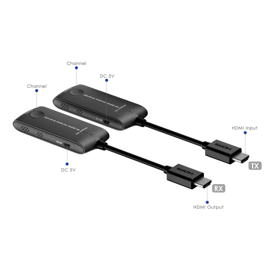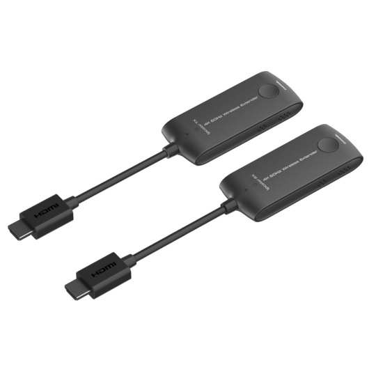 PremiumCord 4K@60Hz HDMI Wireless extender na 20m - Bezdrátový vysílač a přijímač signálu HDMI pro spojení na 20m - Poporuje bezdrátový přenos rozlišení 4K@60Hz a Full HD 1080p na vzdálenost až 20m - Maximální datový tok: 18Gbps - Wifi frekvence: 5 až 5,8GHz - Podporuje rozlišení obrazu: 4K@60Hz/50Hz/30Hz, 2K@60Hz/50Hz/30Hz, FULL HD 1080p@50/60Hz, 1080i@50/60Hz, 720p@50/60Hz - Podporuje:3840x2160@24/30/50/60Hz (YUV 4:4:4, YUV 4:2:2 and RGB),1080P@50/60Hz, 720P@50/60Hz, 1920x1200@60Hz - Podporuje HDMI2.0 - Plně podporuje HDCP2.2 - Podporuje SSID párování - Audio formát PCM - Vysílač představuje malý dongl, který se zasune přímo do konektoru HDMI počítače, notebooku. Vysílač je napájen pomocí USB kabelu z USB portu. - Přijímač představuje malý dongl, který se zasune přímo do HDMI konektoru monitoru nebo projektoru. Přijímač je napájen pomocí USB kabelu z USB portu. - Jednoduchá montáž bez dalšího SW - Vstupní konektory: HDMI konektor vidlice - Výstupní konektory: HDMI konektor vidlice - Odezva menší než 150ms - Extender je napájen za pomoci přiložených USB micro kabelů, které se zasunou do USB portu nebo USB napájecího adaptéru .Extender může fungovat bez externího USB napájení, ale v případě výpadků obrazu nebo horšího zvuku, zapojte USB napájení, protože napájení z HDMI konektoru nepostačuje. - Vysílací a přijímací adaptéry mají krátký HDMI kabel pro snadné zapojení do počítače a zobrazovače nebo TV. - Vzdálenost přenosu závisí na skutečném prostředí. - Pracovní teplota: -20°C až 60°C - Vlhkost: 0-90% (nekondenzující) - Rozměry TX a RX: 40mm x 200mm x 15mm - Váha TX:40g, RX: 40g - Pouzdro černé plastové Pro zařízení je vhodné zajistit optimální podmínky pro přenos bezdrátového signálu: 1, Odstranit rušení signálu jiným bezdrátovým zařízením a odstranit překážky, které stojí signálu v cestě (kovové stěny , sklo, RF rušení apod. v cestě signálu) 2, Signál mohou rušit i vlivy vnějšího prostředí, jako je mikrovlnná trouba, bezdrátové myši a klávesnice., 3 Ujistěte se, že vysílací jednotka je minimálně 20 až 30 cm od zdi a je zhruba ve stejné linii jako přijímací anténa zařízení na druhé straně. Extender nemusí pracovat dobře ve specifických místech jako je např. suterén, tunel atp. Set se skládá - 1x vysílač - Transmitter - 1x přijímač - Receiver - 2x kabel USB - micro USB pro napájení přijímače a vysílače.
