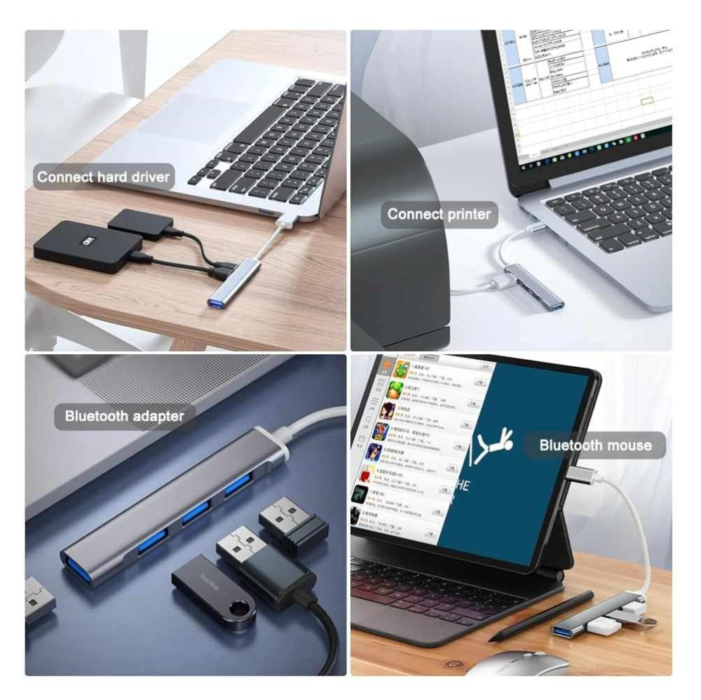 - Jeden port může pracovat rychlostí: SuperSpeed USB 3.2 Gen 1 (5Gbps), ostatní tři porty rychlostí High Speed USB 2.0 (480Mbps)