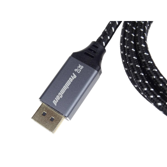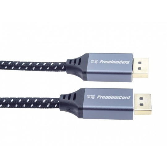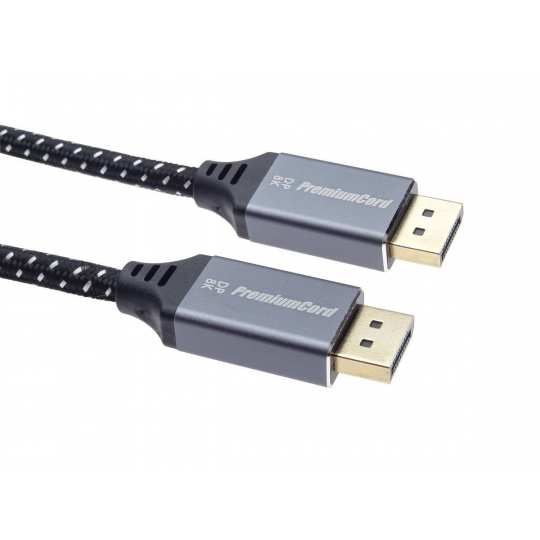 PremiumCord DisplayPort 1.4 přípojný kabel M/M pro rozlišení 8K, kovové krytky a zlacené konektory, 0,5m