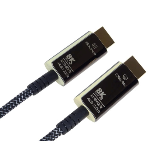 Optický HDMI 2.1 Ultra High Speed 8K@60Hz nebo 4K@120Hz kabel slouží pro spojení dvou audio/video zařízení přes moderní HDMI rozhraní, jako je např. HD-DVD/BluRay přehrávač a LCD/Plazma televizor. Kabel přenáší digitální zvuk i obraz a podporuje digitální ochranu obsahu HDCP.