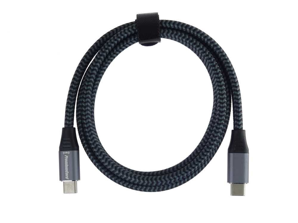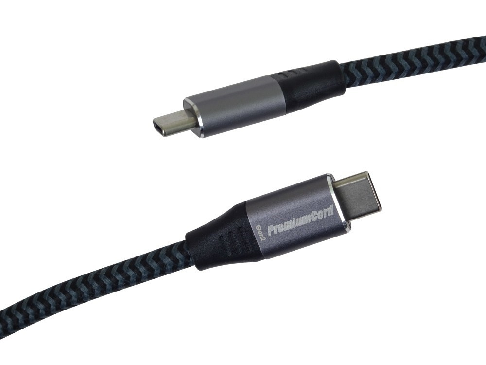 PremiumCord USB-C kabel ( USB 3.2 GEN 2x2, 5A, 100W, 20Gbit/s ) hliníkové krytky konektorů, bavlněný oplet, 3m