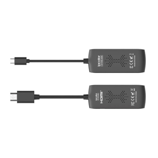 - Vysílací a přijímací adaptéry mají krátký HDMI kabel pro snadné zapojení do počítače a zobrazovače nebo TV.