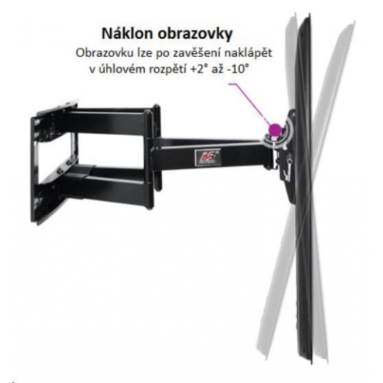 Otočný a sklopný držák na LCD, LED a plazmové Tv největších rozměrů 50" až 90" Cenová bomba mezi držáky na velké televize - špičkový držák unikátních vlastností za špičkovou cenu. Držák unese i ty největší televize a přitom si zachovává výbornou nastavitelnost - otáčení, sklápění, změna vzdálenosti. Součástí je i systém vedení kabeláže. Držák na největší televizory 50 až 90 palců - nosnost 90,7kg, otočný do stran, sklopný, délkově nastavitelný NB SP5 / drzakyastolky.cz Technické údaje: •nosnost 90,7kg •VESA standart 200x200 až 800x500 •doporučujeme na televize s úhlopříčkami 50" až 90" •náklon Tv +5° až -15° •natočení do stran +75° až -75° •vzdálenost od zdi 116mm až 708mm •systém vedení kabeláže •korekce roviny Tv •vynikající konstrukce •bezkonkurenční bezpečnost •snadné polohování obrazovky •záruka 5 let Držák je dodáván včetně hmoždinek a vrutů na montáž držáku na zeď a univerzální sady šroubů pro zavěšení televizoru na držák. Držák podporuje VESA standarty: •VESA 200x200 •VESA 300x300 •VESA 400x200 •VESA 400x300 •VESA 400x400 •VESA 600x400 •VESA 800x400 •VESA 800x500 •všechny ostatní VESA standarty s hodnotou 400-800 x 200-500 Držák NB SP5 je vhodný pro zavěšení všech televizorů a monitorů, které mají hmotnost do 90,7kg a podporují VESA standart dle tabulky výše. Uváděná doporučená úhlopříčka není podstatná, pouze informativní, jak velké obrazovky by měli hmotnost i VESA standart splňovat. Držák proto může být vhodný i pro ještě větší úhlopříčky jak 90 palců..