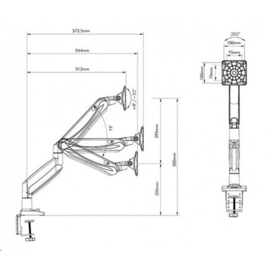 Profesionální kancelářský držák LCD monitoru Fiber Mounts F85A Kancelářský držák na PC monitory 19÷32", nastavení výšky, otáčení, náklon, rotace, korekce roviny, 2 typy uchycení na stolovou desku, USB konektory, systém vedení kabeláže Profesionální stolní držák pro uchycení a polohování PC Lcd monitorů s úhlopříčkou 19 až 32 palců. Držák Vám umožní 3D polohování obrazovky monitoru: otáčení do stran, náklon, nastavení vzdálenosti od stolního uchycení, výškovou polohovatelnost, rotaci monitoru. Držák je osazen USB konektory a má systém pro vedení kabeláže. V balení naleznete 2 typy uchycení na stolovou desku o průměru až 90mm: na kraj stolu nebo do prostoru stolu. Držák podporuje VESA standardy 75x75 a 100x100, v případě potřeby je možné dokoupit rozšíření na 200x100 nebo i 200x200. Zavěsit můžete veškeré monitory a televizory s hmotností 2 až 8kg. Výškovou polohovatelnost zajišťuje plynový píst s nastavitelnou tuhostí - snadná regulace. Profesionální kvalita a krásný design držáku Fiber Mounts F85A umožní použití ve firmách, kancelářích, pracovnách, ale i domácnostech a dětských pokojích. Technické údaje: zatížení 2÷8kg podporuje VESA standardy 75x75 a 100x100 možnost rozšíření VESA na 200x100 nebo 200x200 doporučujeme na monitory a televizory s úhlopříčkou 19 až 32" otáčení do stran +/-90° náklon: nahoru +55°, dolů -8° celková výška 500mm výšková polohovatelnost v rozmezí 295mm maximální vzdálenost od stolního uchycení 572mm funkce PIVOT - rotace monitoru, nastavení horozontální nebo vertikální polohy monitoru korekce roviny monitoru integrované USB konektory součástí balení 2 typy uchycení na stolovou desku: na kraj stolu nebo do prostoru profesionální kvalita snadná nastavitelnost krásný design záruka 2 roky Kancelářský držák na LCD monitory Fiber Mounts F85A podporuje VESA standardy: VESA 75x75 VESA 100x100 možnost dokoupit rozšíření VESA 200x100 možnost dokoupit rozšíření VESA 200x200.