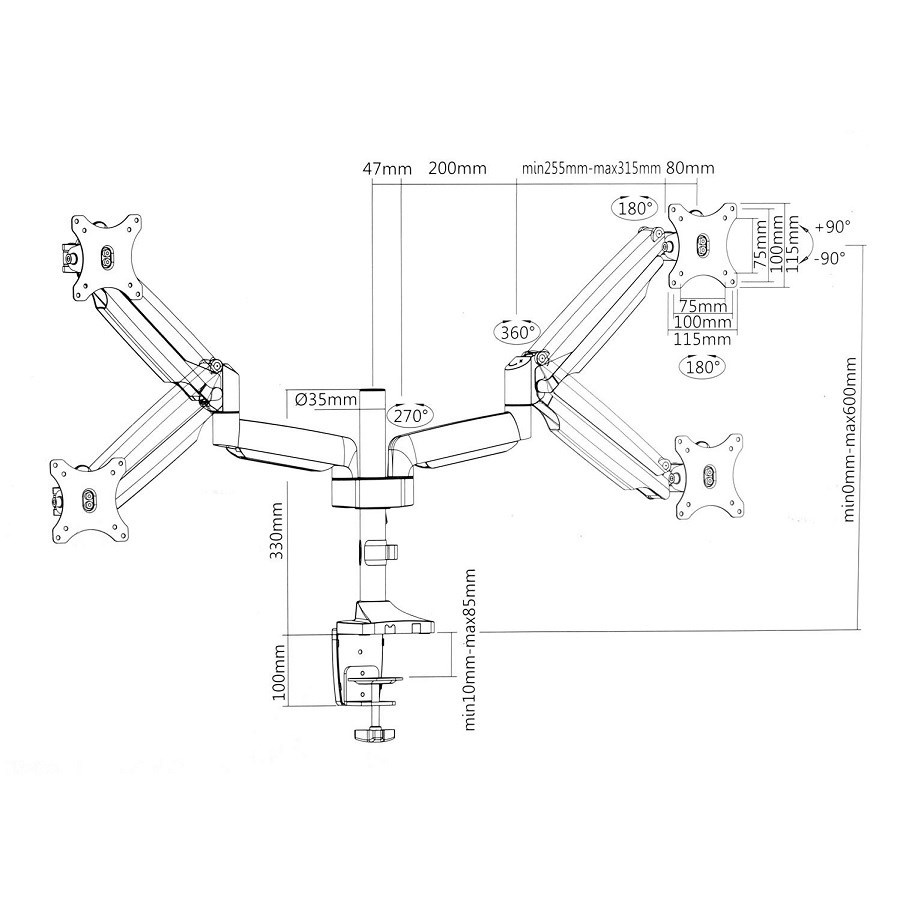 Profesionální stolní držák 2 monitorů Fiber Mounts M7C66 Velmi kvalitní, spolehlivý designový stolní držák na 2 monitory 13-32", nezávislé nastavení výšky, náklonu, otáčení, vzdálenosti i výšky monitoru Stolní kancelářský pracovní držák pro nezávislé zavěšení 2 obrazovek (monitorů, menších televizorů). Držák je plně polohovatelný a umožňuje nastavení pozice jednotlivých monitorů - vzdálenost od nosníku, výška, otočení do strany, náklon, funkci PIVOT pro možnost otočení obrazovky do horizontální nebo vertikální polohy. Uchycení na stolovou desku (případně jakoukoliv jinou pracovní plochu) je možné dvěma způsoby - na okraj (svěrák) nebo do prostoru (nutné vyvrtání 1 otvoru do desky) - obě varianty uchycení jsou součástí balení. Držák má systém pro vedení kabeláže. Barevné provedení stříbrné. Záruka 3 roky. Profesionální stolní kancelářský pracovní držák na 2 monitory, který je plně polohovatelný. Nastavení monitorů 13-32 palců je nezávislé, otáčení, sklon, vzdálenost, natočení - Fiber Mounts M7C66 Technické údaje: nosnost 18kg (2x9kg) držáky podporují VESA standardy 75x75 a 100x100 ideální na monitory a televizory s úhlopříčkou 13-32" nastavení vzdálenosti od nosníku 0-530mm nastavení výšky monitoru 0-600mm (střed obrzovky) nastavení sklonu +/- 90° otočný do stran +/- 180° 2 typy uchycení na stolovou desku síla stolové desky 10-85mm vedení kabeláže korekce roviny obrazovek materiál hliník + ocel vynikající kvalita barva stříbrná záruka 3 roky Velmi kvalitní držák na 2 monitory, který díky svému designu a snadnému polohování najde své využití především v kacelářích, ale i domácnostech. Polohu každého monitoru snadno nastavíte přesně dle svých požadavků. Monitory mohou být umístěny vedle sebe ale i zády k sobě. Každý monitor můžete výškově nastavit, otáčet, měnit vzdálenost od nosníku, přetáčet na šířku nebo na výšku... Držák má univerzální uchycení a je vhodný na všechny typy a značky monitorů, ale i All in One PC s úhlopříčkou 13-32". Kancelářský polohovatelný držák na 2 monitory Fiber Mounts M7C66 Držák na 2 monitory M7C66 podporuje VESA standardy: VESA 75x75 VESA 100x100.