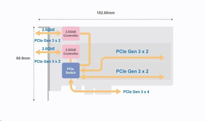 Rozšiřující karta s 2x PCIe Gen3 M.2 NVMe SSD sloty a 2x 2,5GbE porty pro zvýšení výkonu