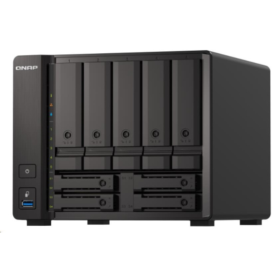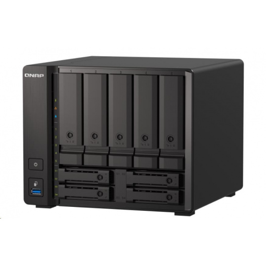 | Pozice pro diskové jednotky | 5 x 3,5" + 4 x 2,5" Systém se dodává bez HDD/SSD. Seznam kompatibilních disků HDD/SSD najdete na stránce https://www.qnap.com/compatibility/ |