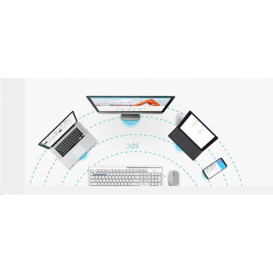 Inteligentní přepínání mezi Bluetooth 3.0, 4.0 a 2.4G zajišťuje stabilní připojení bezdrátového přenosu. I nadále můžete používat myš bez ohledu na nedostatek USB portu nebo při ztrátě přijímače.