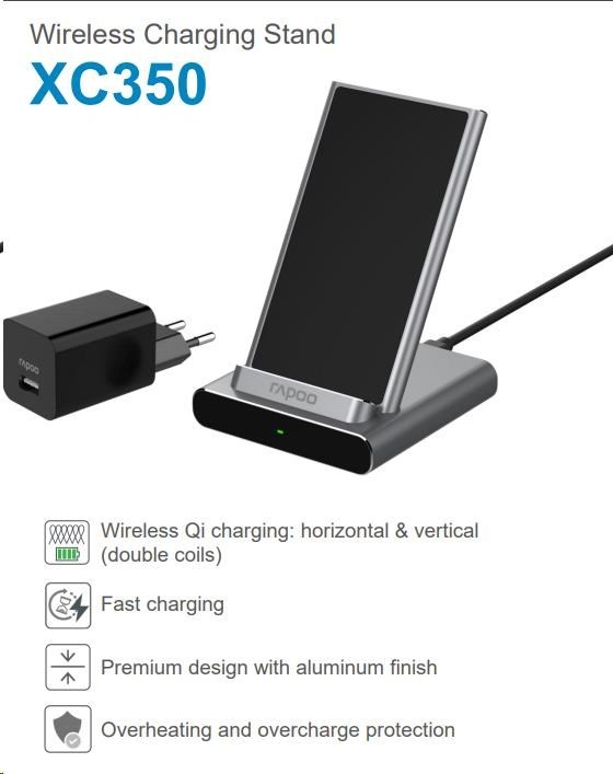 RAPOO nabíjecí stojan XC350 Wireless Charging Stand Silver