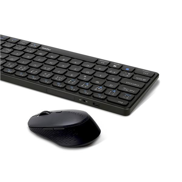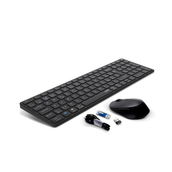Tato ultratenká stolní souprava využívá prvotřídní materiály v elegantním a kompaktním provedení, které ani přesto nepostrádá blok číselných kláves. Díky pevné hliníkové základně je tělo klávesnice odolné a pevné. Zároveň dodá každému pracovnímu místu stylový punc. Klávesnice E9700M je nejen vyspělá konstrukcí, ale také funkcionalitou. Nabízí vícerežimovou technologii připojení firmy Rapoo – prostřednictvím spolehlivého bezdrátového vysílače 2,4 GHz, Bluetooth 3.0 a 5.0 – umožňuje současné připojení a přepnutí několika zařízení (s automatickým párováním). Myš v této sadě disponuje vysoce výkonným optickým senzorem, plně nastavitelným v rozsahu 600 až 1600 DPI a tichými spínači. Kromě toho je klávesnice vybavena ekologicky šetrným dobíjecím akumulátorem tak, abyste si mohli plně vychutnat volnost bez kabelů.