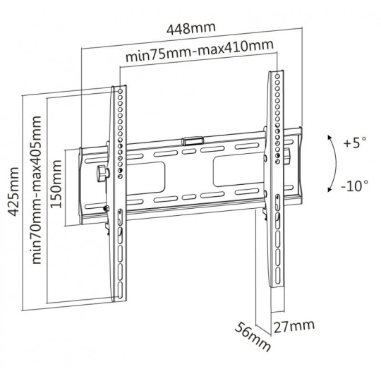 Nástěnný ocelový držák na Plasma a LCD TV s uhlopříčkou 32"- 55" (81-140cm) a hmotností maximálně 50kg. Konzole na zavěšení TV s vodováhou, vertikálně výklopný +5°/-10°, vzdálenost od stěny 56mm, materiál ocel, cenově výhodné, barva černá. Uchycení VESA: 200x200, 400x200, 300x300, 400x400..