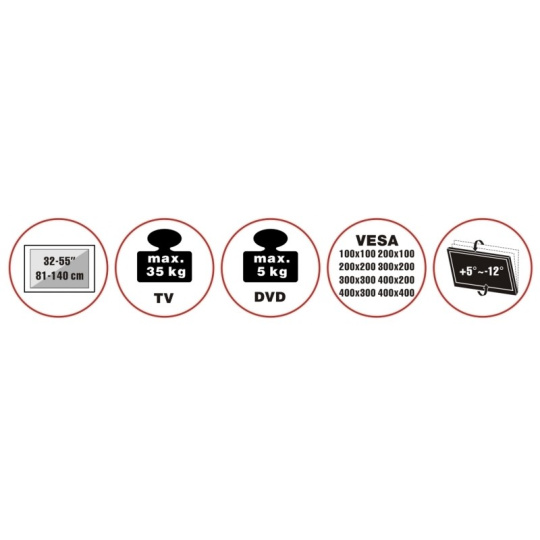 Televizní stolek na velké TV s uhlopříčkou 32"- 55" (81-140cm) a hmotností maximálně 35kg. Středová nosná tyč 103-143cm na kolečkách s aretací, držák vertikálně výklopný +5°/-12°, police 22x30cm max 5kg, Cable managment, rozměry 72x60,7x164,3cm, materiál ocel, barva černá. Uchycení VESA: 100x100, 200x100, 200x200, 300x200, 300x300, 400x200, 400x400..