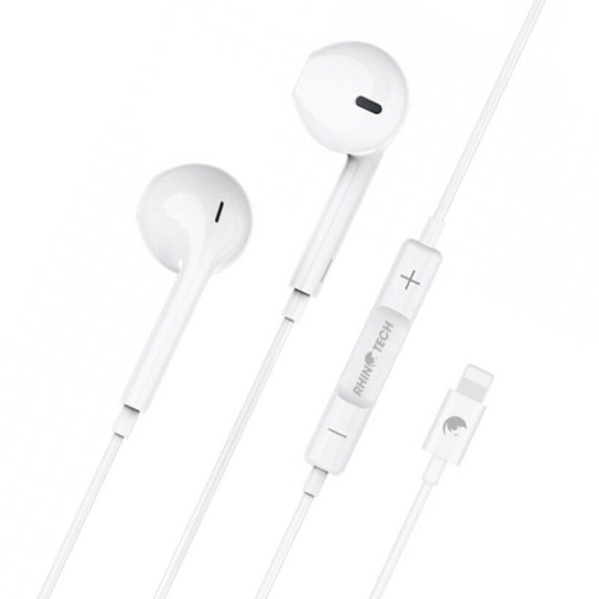 RhinoTech drátová sluchátka s Lightning konektorem bílá