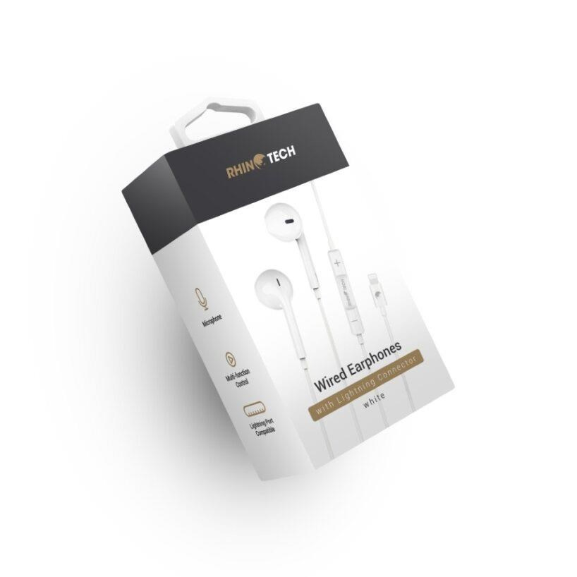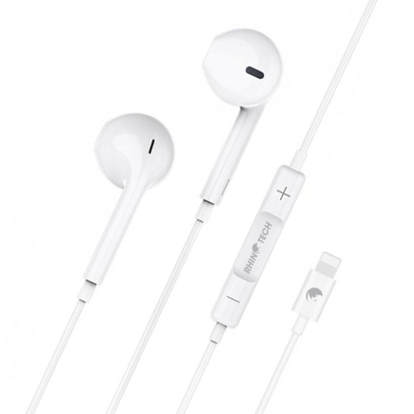 RhinoTech drátová sluchátka s Lightning konektorem bílá