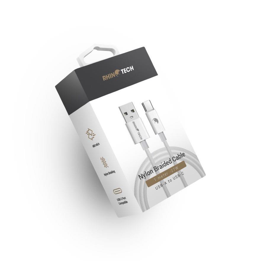 RhinoTech kabel s nylonovým opletem USB-A na USB-C 27W 1M bílá