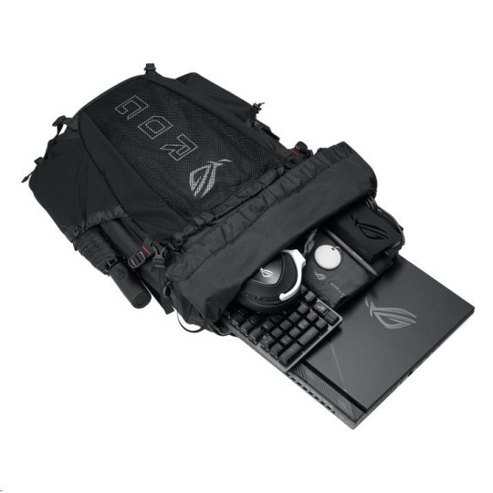 - Praktický nastavitelný rolovací design: Herní batoh ROG Archer Ergo s nastavitelnou rolovatelnou svrchní částí o objemu 40 litrů a prostorem pro 18palcový notebook zajišťuje bezpečné uložení veškerého vybavení bez ohledu na to, kolik toho nesete.
