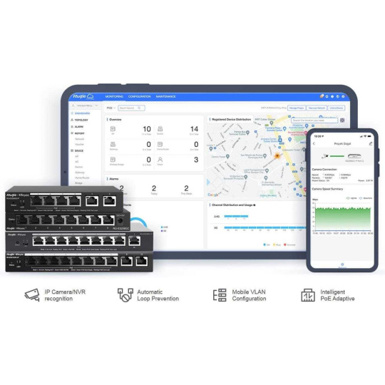 Registrace dealerské ceny: https://docs.google.com/forms/d/1sWwsswsbBk36eZx4CJrfl47qUvrORQyYz7kMjrt2f_c/prefill Popis produktu Inteligentní cloudově i přes webové rozhraní spravovatelný smart desktop PoE switch RG-ES205GC-P od značky Ruijie, nabízí cenově efektivní řešení s 5 Gigabit LAN porty z čehož 4 porty podporují 802.3af/at PoE s celkovým PoE budgetem 54 W. Tento kompaktní přepínač je ideální pro síťové aplikace, které vyžadují výkon a spolehlivost. Co se výčtu funkcí týče, switch nabízí tichý chod bez ventilátorů, podporu až 16 VLAN, DHCP snooping, testování kabelu, ochranou proti zakruhování a v rámci PoE možnost použití až na vzdálenost 250 m při snížení linkové rychlosti na 10 Mbps. Klíčové vlastnosti • 5× 10/100/1000 Mbps LAN porty • 4× 802.3af/at PoE - max. 30 W/port, PoE budget 54 W • Kvalitní provedení, kovové šasi • Bez venilátoru • Nízká spotřeba - max. 6 W • Správa přes webové rozhraní a cloud • Celoživotní správa na Ruijie Cloud kdykoli a kdekoli • Rozpoznávání IP kamer - jedinečná hodnota pro CCTV síť • Automatická prevence proti zakruhování • Podpora Long Range PoE na vzdálenost 250 m Obsah balení • Zařízení • Napájecí adaptér 5 4V/1.1 A Technické parametry Konektory a rozhraní Rychlost LAN:(5) 10/100/1000Mbps Napájení Typ napájení:DC konektor Typy PoE:PoE-Out (pouze) Podporované PoE-Out standardy:802.3af, 802.3at Počet PoE Out portů:4 PoE budget [W]:54 PoE na vzdálenost až 250m:Ano Max. spotřeba energie [W]:6 Napájení přes konektor/svorkovnici:54V / 1,1A Fyzické charakteristiky Provedení:Desktop Ventilátory:Bez ventilátoru Šasi:Kovové Tlačítka:Reset Provozní teplota [°C]:0 až 40 Šířka [mm]:148 Výška [mm]:26 Hloubka [mm]:78 Obecné Rychlost přepínání [Gbps]:10 Tabulka MAC adres:2000 Rychlost předávání paketů [Mpps]:7,4 Software Web management:Ano Management:Webové rozhraní, Ruijie cloud Funkce:VLAN, DHCP snooping Výchozí IP adresa:10.44.77.200 Výchozí jméno a heslo:Nastavuje se při prvním spuštění.