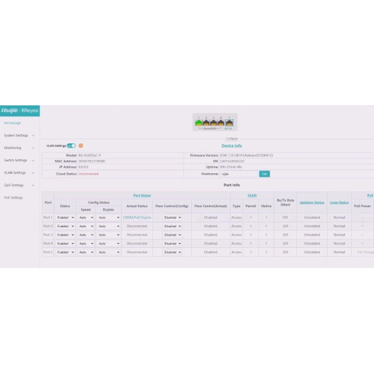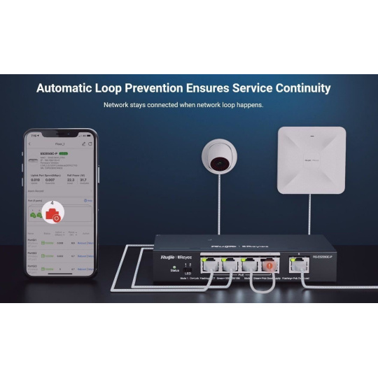 Registrace dealerské ceny: https://docs.google.com/forms/d/1sWwsswsbBk36eZx4CJrfl47qUvrORQyYz7kMjrt2f_c/prefill Popis produktu Inteligentní cloudově i přes webové rozhraní spravovatelný smart 19" rackmount switch RG-ES224GC od značky Ruijie, nabízí cenově efektivní řešení s 24 Gigabit LAN porty. Tento kompaktní přepínač je ideální pro síťové aplikace, které vyžadují výkon a spolehlivost. Co se výčtu funkcí týče, switch nabízí tichý chod bez ventilátorů, podporu až 16 VLAN, DHCP snooping, testování kabelu a ochranou proti zakruhování. Klíčové vlastnosti • 24× 10/100/1000 Mbps LAN porty • Kvalitní provedení, kovové šasi, 19" rackmount provedení • Bez venilátoru • Nízká spotřeba - max. 14 W • Správa přes webové rozhraní a cloud • Celoživotní správa na Ruijie Cloud kdykoli a kdekoli • Rozpoznávání IP kamer - jedinečná hodnota pro CCTV síť • Automatická prevence proti zakruhování Obsah balení • Zařízení • Úchyty do racku • Napájecí kabel Technické parametry Konektory a rozhraní Rychlost LAN:(24) 10/100/1000Mbps Napájení Typ napájení:Ze sítě (230V) Max. spotřeba energie [W]:14 Napájení přes konektor/svorkovnici:230V AC Fyzické charakteristiky Provedení:Rackmount Ventilátory:Bez ventilátoru Šasi:Kovové Tlačítka:Reset Provozní teplota [°C]:0 až 50 Šířka [mm]:440 Výška [mm]:44 Hloubka [mm]:165 Obecné Rychlost přepínání [Gbps]:48 Tabulka MAC adres:8000 Rychlost předávání paketů [Mpps]:35,7 Software Web management:Ano Management:Webové rozhraní, Ruijie cloud Funkce:VLAN, DHCP snooping Výchozí IP adresa:10.44.77.200 Výchozí jméno a heslo:Nastavuje se při prvním spuštění.