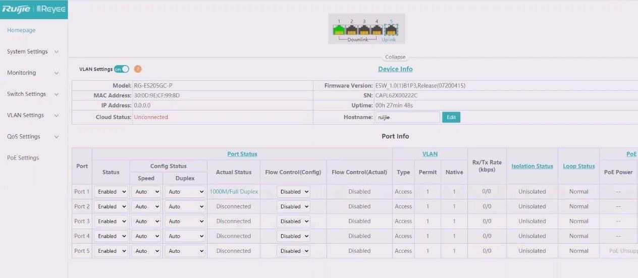 Registrace dealerské ceny: https://docs.google.com/forms/d/1sWwsswsbBk36eZx4CJrfl47qUvrORQyYz7kMjrt2f_c/prefill Popis produktu Inteligentní cloudově i přes webové rozhraní spravovatelný smart 19" rackmount switch RG-ES224GC od značky Ruijie, nabízí cenově efektivní řešení s 24 Gigabit LAN porty. Tento kompaktní přepínač je ideální pro síťové aplikace, které vyžadují výkon a spolehlivost. Co se výčtu funkcí týče, switch nabízí tichý chod bez ventilátorů, podporu až 16 VLAN, DHCP snooping, testování kabelu a ochranou proti zakruhování. Klíčové vlastnosti • 24× 10/100/1000 Mbps LAN porty • Kvalitní provedení, kovové šasi, 19" rackmount provedení • Bez venilátoru • Nízká spotřeba - max. 14 W • Správa přes webové rozhraní a cloud • Celoživotní správa na Ruijie Cloud kdykoli a kdekoli • Rozpoznávání IP kamer - jedinečná hodnota pro CCTV síť • Automatická prevence proti zakruhování Obsah balení • Zařízení • Úchyty do racku • Napájecí kabel Technické parametry Konektory a rozhraní Rychlost LAN:(24) 10/100/1000Mbps Napájení Typ napájení:Ze sítě (230V) Max. spotřeba energie [W]:14 Napájení přes konektor/svorkovnici:230V AC Fyzické charakteristiky Provedení:Rackmount Ventilátory:Bez ventilátoru Šasi:Kovové Tlačítka:Reset Provozní teplota [°C]:0 až 50 Šířka [mm]:440 Výška [mm]:44 Hloubka [mm]:165 Obecné Rychlost přepínání [Gbps]:48 Tabulka MAC adres:8000 Rychlost předávání paketů [Mpps]:35,7 Software Web management:Ano Management:Webové rozhraní, Ruijie cloud Funkce:VLAN, DHCP snooping Výchozí IP adresa:10.44.77.200 Výchozí jméno a heslo:Nastavuje se při prvním spuštění.