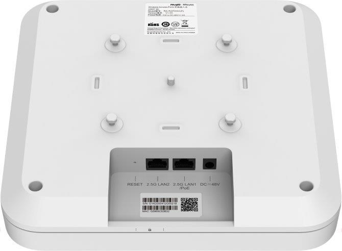 Registrace dealerské ceny: https://docs.google.com/forms/d/1sWwsswsbBk36eZx4CJrfl47qUvrORQyYz7kMjrt2f_c/prefill Popis produktu RG-RAP2260(H) je bezdrátové Wi-Fi 6 Access Point s montáží na strop ži zeď od společností Ruijie Reyee s plnou podporou roamingu pro bezproblémový přechod mezi jednotlivými AP. Zařízení je vybaveno dvěmi 2.5-Gigabitovými porty z čehož první s podporou napájení přes 802.3bt PoE a Dual Band Wi-Fi 6 4x4 MU-MIMO rádio s modulačními rychlostmi 1148 Mbps ve 2.4 GHz a 4804 Mbps v 5 GHz pásmu. Hlavní přednosti • Snadno rozšiřitelná Wi-Fi pomocí Reyee Mesh • (2) 2.5-Gigabitový ethernet • Podpora MU-MIMO, Roaming, Beamforming, OFDMA a dalších technologií • Vysoká propustnost díky WiFi 6 a 4x4 MIMO v obou pásmech • Vnitřní provedení • Napájení přes 802.3bt PoE a 48V DC konektor • Management pouze přes Ruijie Cloud Obsah balení • Zařízení • Montážní držák • Šroubky Technické parametry Bezdrátové vlastnosti Bezdrátové frekvence:2.4 + 5 GHz (dual band) WiFi standardy:802.11ax, 802.11ac, 802.11ac - wave2, 802.11n, 802.11a, 802.11b/g MU-MIMO:Ano Přenosová rychlost - 5GHz [Mb/s]:4804 Přenosová rychlost - 2.4GHz [Mb/s]:1148 Vysílací výkon 2.4GHz [dBm]:32 Vysílací výkon 5GHz [dBm]:32 Šifrování:WPA-PSK/WPA2-PSK 2.4GHz MIMO:4 x 4 5GHz MIMO:4 x 4 Typ antény:Vestavěná Počet vestavěných antén:8 Roaming:Ano Zisk antény [dBi]:3, 4 Konektory a rozhraní Rychlost LAN:(2) 100/1000/2500Mbps Gigabit LAN:Ano Napájení Napájení přes PoE:802.3bt Typy PoE:PoE-In (pouze) Max. spotřeba energie [W]:40 Napájení přes konektor/svorkovnici:48V / 1A Fyzické charakteristiky Použití:Vnitřní Tlačítka:Reset Provozní teplota [°C]:0 až 40 Hmotnost [g]:1800 Šířka [mm]:230 Výška [mm]:50 Hloubka [mm]:230 Software Operační mód:Access Point Výchozí IP adresa:Dynamická z DHCP, 10.44.77.253 Výchozí jméno a heslo:Nastavuje se při prvním spuštění.