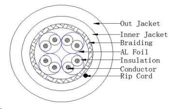 Kabel S/FTP 4 páry LSZH+PE CAT 7 drát 23AWG čistá měď. Speciálně pro venkovní použití, nebo v extremnějších podmínkách, měrky po metrech, balení na dřevěných cívkách po 500m. Dvojitý plášť LSZH + PE (UV stabilní)