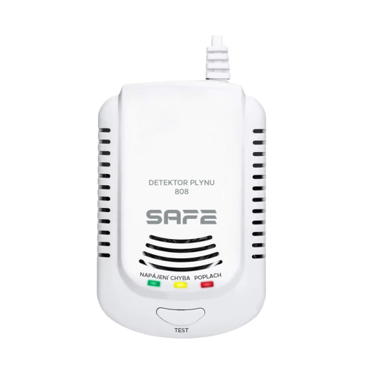 Detektor hořlavých a výbušných plynů v ekonomickém provedení. Přístroj byl navržen pro detekci a včasné varování před výskytem hořlavých a výbušných plynů (zemní plyn, metan, propan, butan) pomocí nejnovější technologií polovodičového senzoru, který nevyžaduje další kalibrace. Hlásič plynu SAFE - 808 se ideálně hodí pro detekci úniku plynu ze všech domácích plynových spotřebičů a plynových kotlů. Detekuje všechny hořlavé plyny běžně se vyskytující v domácnostech.