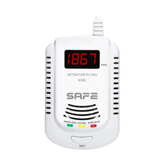 Inteligentní detektor hořlavých a výbušných plynů s hlasovým varováním a digitálním displejem. Přístroj byl navržen pro detekci a včasné varování před výskytem hořlavých a výbušných plynů (zemní plyn, metan, propan, butan) pomocí nejnovější technologií senzoru katalického spalování, který nevyžaduje další kalibrace. Digitální hlásič SAFE - 808L se ideálně hodí pro detekci úniku plynu ze všech domácích plynových spotřebičů a plynových kotlů. Detekuje všechny hořlavé plyny běžně se vyskytující v domácnostech.