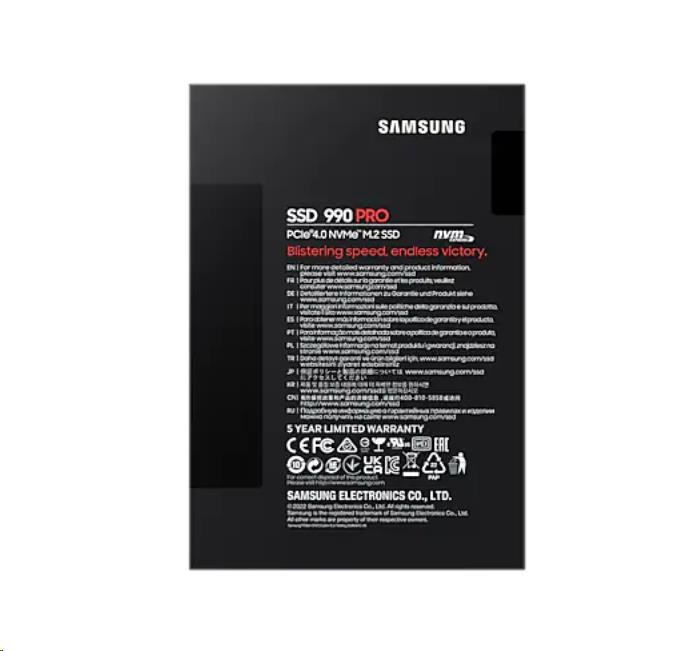 990 PRO přináší rychlosti, které budete milovat. Ve srovnání 980 PRO dosahuje 40% nárůst v sekvenčním čtení a 55% v sekvenčním zápisu. Výsledkem toho jsou vysoké hodnoty 1550K a 1400K IOPS či 7450 a 6900 MB/sv rámci sekvenčního čtení a zápisu, což se blíží maximálním teoretickým rychlostem samotného rozhraní PCIe 4.0. Oblíbené herní tituly, výsledky datové analýzy, editovaná videa i 3D modely tak budou načteny dříve, než řeknete SSD. *Výkon sekvenčního a náhodného zápisu byl měřen s aktivovanou technologií Intelligent TurboWrite. Ta funguje pouze v rámci určité velikosti přenosu dat. Výkon se může v závislosti na použitém firmwaru SSD, hardwaru, konfiguraci systému a působení dalších faktorů lišit. Podrobné informace vám poskytne místní servisní středisko. *Konfigurace testovacího systému: 8-jádrový procesor AMD Ryzen 7 5800X na frekvenci 3,8 GHz, DDR4 3600 MHz 16 GB × 2 (PC4-25600 OC), OS-Windows 10 Pro 64-bit, Čipset ASRock-X5. *Chcete-li maximalizovat výkon 990 PRO, zkontrolujte, zda váš systém podporuje rozhraní PCIe 4.0 na webových stránkách výrobců Intel či AMD. *4TB varianta bude dostupná v průběhu roku 2023.