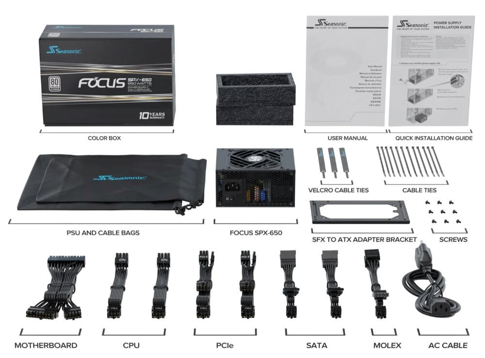 Nová řada Seasonic FOCUS SPX je univerzální v použití a výkonná při malých rozměrech. Jedná se o standardní jednotku SFX o rozměrech 125 mm (délka) x 100 mm (šířka) x 63,5 mm (výška). FOCUS SPX (2021) se dodává s adaptérem SFX na ATX, který umožňuje montáž napájecího zdroje nejen do skříně formátu SFX, ale také do standardní skříně ATX, pokud uživatel upřednostňuje více prostoru pro proudění vzduchu uvnitř skříně počítače. Hybridní ovládání ventilátoru Seasonic je vždy aktivní, aby optimalizovalo chlazení podle potřeby.
