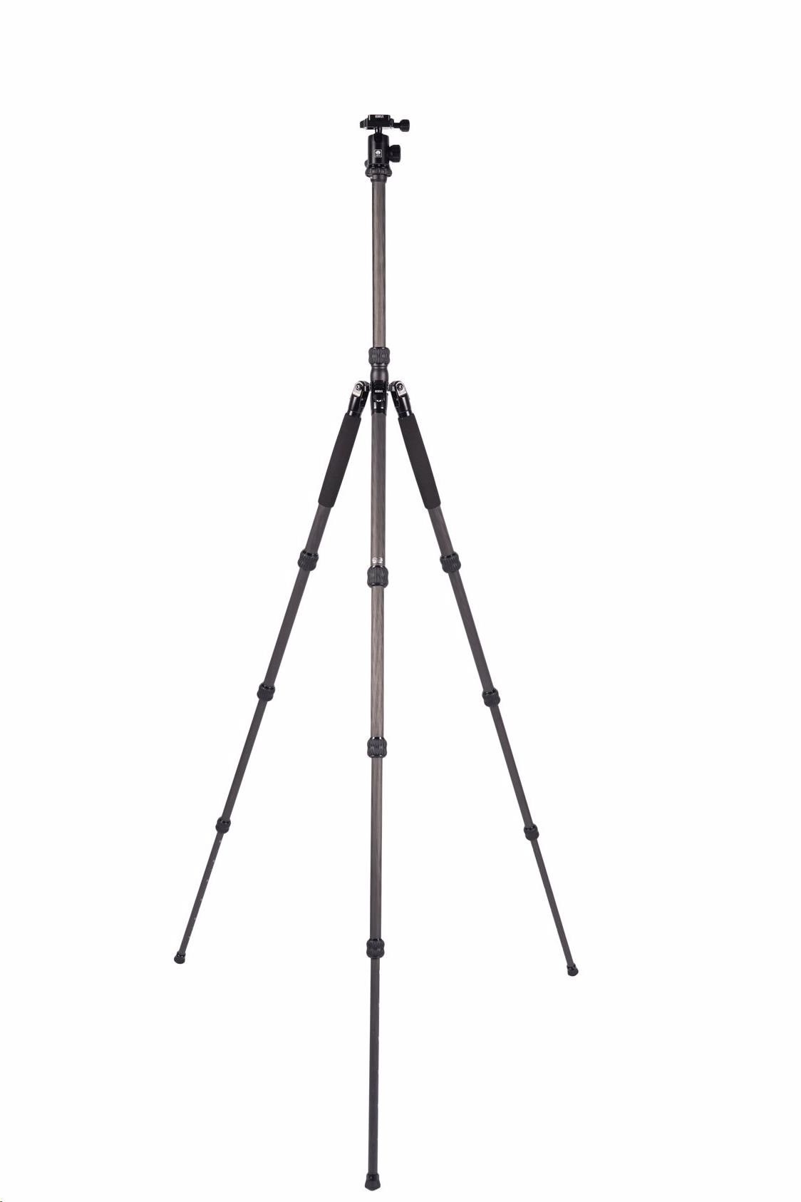 Počet vodováh: 2 Středový sloupek: Ano Způsob uchycení hlavy: 3/8", 1/4" Typ zámku nohou: Twist Lock Sekce nohou: 4 Rychloupínání (quick release): Ano Patky stativu: S hroty, Guma Průměr nohy (mm): 25 mm Typ hlavy: Kulová hlava Maximální výška nohou (mm): 1400 mm Materiál: Uhlíkové vlákno Maximální zatížení (kg): 14 kg Minimální výška (mm): 500 mm Složená délka: 465 mm Maximální výška (mm): 1680 mm Barva: Černá Použití: Kompakt s výměnným objektivem, DSLR, CSC Hmotnost (g): 1550 g.