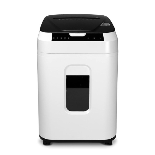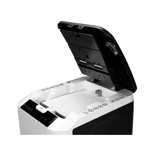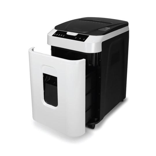 Automatický skartovací stroj atraktivního designu s kapacitou zásobníku na 180 listů pro střední kanceláře. Vhodný pro skartaci dokumentů o šířce 220 mm. Stroj je standardně vybaven automatickým systémem start/stop, zpětným chodem, tepelnou pojistkou motoru proti přehřátí, signalizací přeplněného koše. Příležitostně lze skartovat sešívací sponky a kreditní karty. Šíře vstupu: 220 mm Velikost řezu: 2 x 12 mm Kapacita při manuálním vložení, papír DIN A4, 70 g/m2: 10 Kapacita automatického zásobníku: 180 listů Stupeň utajení dle nové DIN 66399: P-5 Řezný mechanismus skartuje CD, kreditní karty a sponky: ne Rychlost: 0,05 m/s Velikost koše: 32,2 litrů Hlučnost motoru: < 55 dB Připojovací parametry, Watt / Volt/Hz ( střídavý proud ): 500 W /230 / 50 / 1~ Délka nepřetržité skartace: 60 min Tepelná pojistka motoru proti přehřátí: dvojitá Automatický start/stop: ano Aut. zpětný chod / aut. vypnutí při ucpaném koši: ano Elektronické zabezpečení dveří: elektronické s LED kontrolkou Pojezdová kolečka: ano Rozměry, mm ( v x š x h ): 555 x 365 x 265 Hmotnost: 16,1 kg.