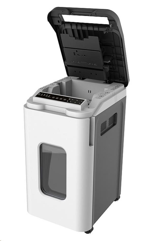 Automatický skartovač papíru je jednoduchá a pohodlná metoda, jak znehodnotit dokumenty na pracovišti. Stroj umožňuje postupné skartování až 350 listů na jedno vložení do podavače řezem 2x12 mm. Skartovač postupně zpracuje celý objem bez nutnosti dohledu. Možná je i přímá skartace až 11 listů 70g/m2.