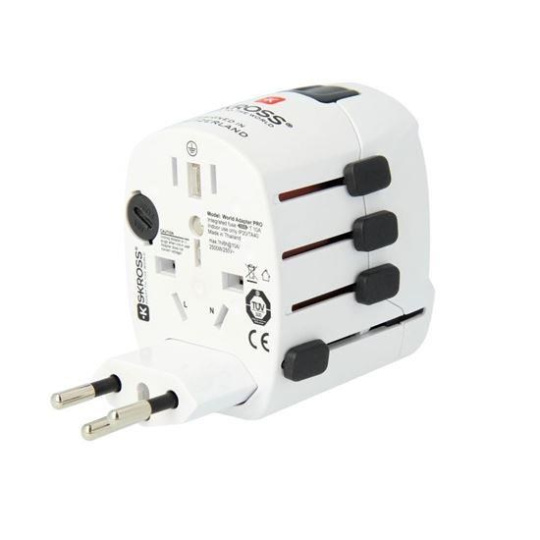 SKROSS cestovní adaptér PRO World & USB, 6,3A max., uzemněný, vč. univerzální USB nabíječky, pro celý svět