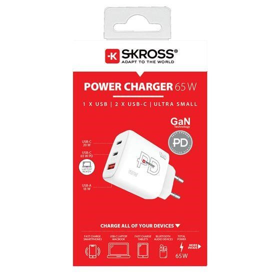SKROSS USB A+C nabíjecí adaptér Power charger 65W GaN EU, Power Delivery, typ C