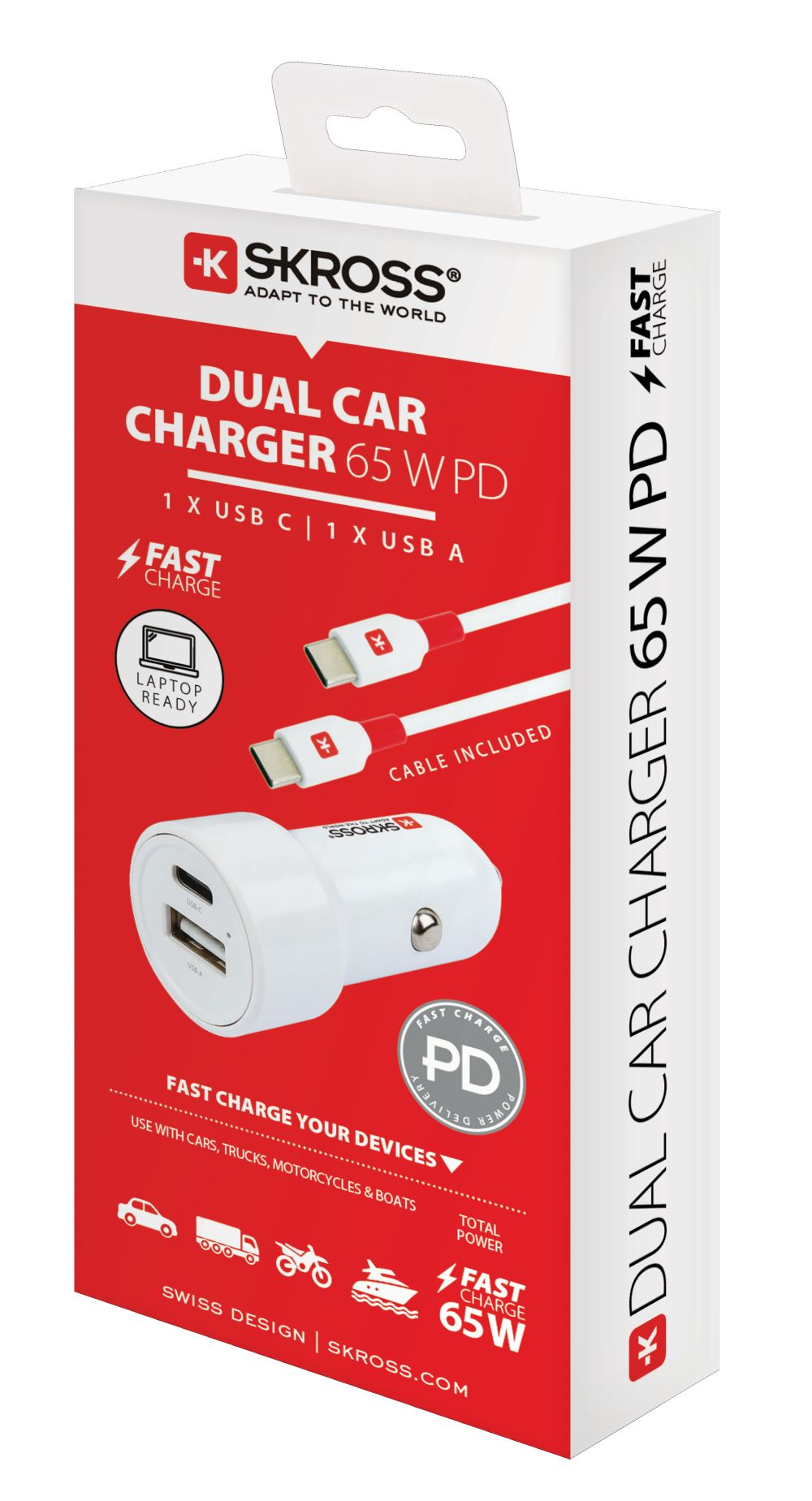 SKROSS USB A+C nabíjecí autoadaptér Dual Car Charger, 65W PD