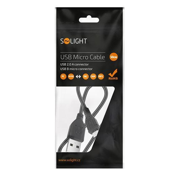 Solight USB kabel, USB 2.0 A konektor - USB B micro konektor, sáček, 50cm