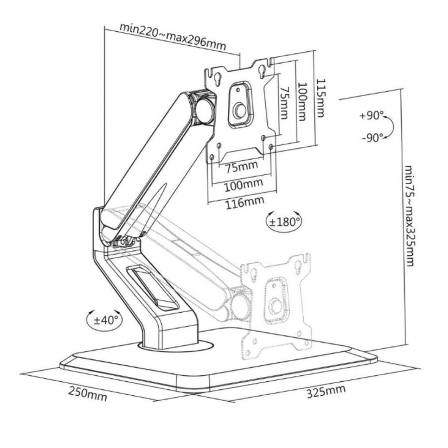 Ergonomický stolní stojan na monitor Fiber Mounts FRIOS Polohovatelný stolní stojan na monitory 15-32" pro ergonomii Vaší práce, nastavitelná výška, otáčení do stran, velký rozsah naklápění, VESA 75x75 a 100x100, nosnost 10kg Designový stolní stojan pro skvělou ergonomii při práci s monitory. Stojan je ideální na monitory s úhlopříčkou 15-32", umožňuje nastavení výšky 75-325mm, naklápění ve velkém rozsahu až 90°, otáčení na obě strany +/- 40° a podporuje i funkci pivot. Konstrukce je upravena pro vedení kabeláže. Rozměry stabilní podstavy 325x250mm. Podporuje VESA standardy 75x75 a 100x100 a maximální zatížení je 10kg. Rukojeť obsahuje plynovou pružinu pro nastavení dle hmotnosti monitoru, proto je výškové polohování extrémně snadné a rychlé. Stojan je možné použít i na menší televize s úhlopříčkou do 32". Držák je vhodný i pro používání dotykových monitorů. Stolní ergonomický stojan na monitory 15-32" snadno polohovatelný Fiber Mounts FRIOS Technické údaje: nosnost 10kg podpora VESA standardů 75x75 a 100x100 vhodný na monitory a menší televize 15-32" vynikající ergonomie výškové polohování 75-325mm otáčení do stran +/- 40° naklápění +/- 90° pivot +/- 180° rozměry podstavy: šířka 325mm, hloubka 250mm plynová pružina pro snadné a rychlé nastavení výšky velmi pěkný design vynikající kvalita, skvělá stabilita, snadná instalace systém pro vedení kabeláže barevné provedení černé záruka 3 roky Ergonomický stojan na monitory Fiber Mounts M8C95Podstavec - stojan na monitor, ergonomický, snadno polohovatelný Fiber Mounts M8C95 Monitorový stojan podporuje VESA standardy: VESA 75x75 VESA 100x100 Inovativní držák monitoru se stojanem je navržen pro snadné používání klasických, prohnutých nebo dotykových monitorů. Díky tomuto držáku si vytvoříte ergonomický pracovní prostor doma i v kanceláři. Držák monitoru je vhodný pro monitory nebo televizory s úhlopříčkou od 15" do 32" se standardem VESA s rozměry 75x75 nebo 100x100 a hmotností do 10 kg. Díky širokým možnostem nastavení můžete monitor nastavit v ideálním úhlu..