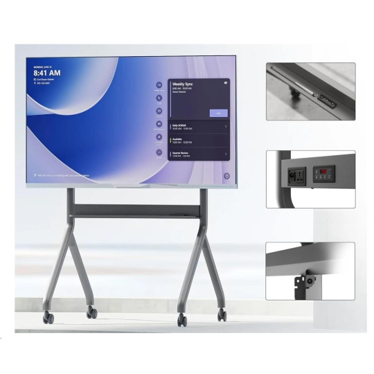 Kvalitní, velmi pěkný pojízdný televizní stojan s elektrický pohonem pro úpravu výšky obrazovky od 1500 mm do 1750 mm. Stojan má polici na příslušenství 962x99 mm s integrovaným ovládacím panelem, 4 otočná pojezdová kolečka s aretací a držák Tv s podporou VESA 200x200 až 900x600. Součástí balení je i dálkové ovládání. Vynikající ocelová konstrukce s nosností 90,9 kg zajišťuje vynikající pevnost, stabilitu a odolnost. Na stojan poskytujeme záruku 3 roky. Stojan na interaktivní tabuli / televizi / dotykovou obrazovku / monitor NB P220 Popis: Univerzální mobilní stojan pro středně velké a velké obrazovky Perfektní řešení pro interaktivní tabule a multimediální obrazovky Široká, stabilní základna se snadným přístupem k dotykovým obrazovkám Elektrické nastavení výšky obrazovky Kvalitní materiály, velmi pevná a odolná konstrukce Police na příslušenství s ovládacím panelem Podpora standardu VESA Jednoduchá a rychlá montáž Ideální pro konferenční místnosti, školy, na výstavy, prezentace, přednášky nebo pro soukromé použití Čtyři otočná kolečka s funkcí aretace Vysoká nosnost, skvělá stabilita, tichý a spolehlivý motor Barevné provedení grafit Elektrický stojan na multimediální tabule a multimediální dotykové monitory NB P220 Technické údaje: Nosnost 90,9 kg Pro obrazovky 60" - 100" Podpora VESA standardů 200x200 až 900x600 Výškové nastavení v rozsahu 150 ~ 175 cm Otočná kolečka o průměru 75 mm s funkcí aretace Pevná ocelová konstrukce Spodní police na příslušenství s ovládacím panelem, rozměry: 962 x 99 mm Dálkové ovládání Výkonný motor 75W Napájení 240V / 110V Povrchová úprava: práškový lak Barva: grafitová Záruka 3 roky.