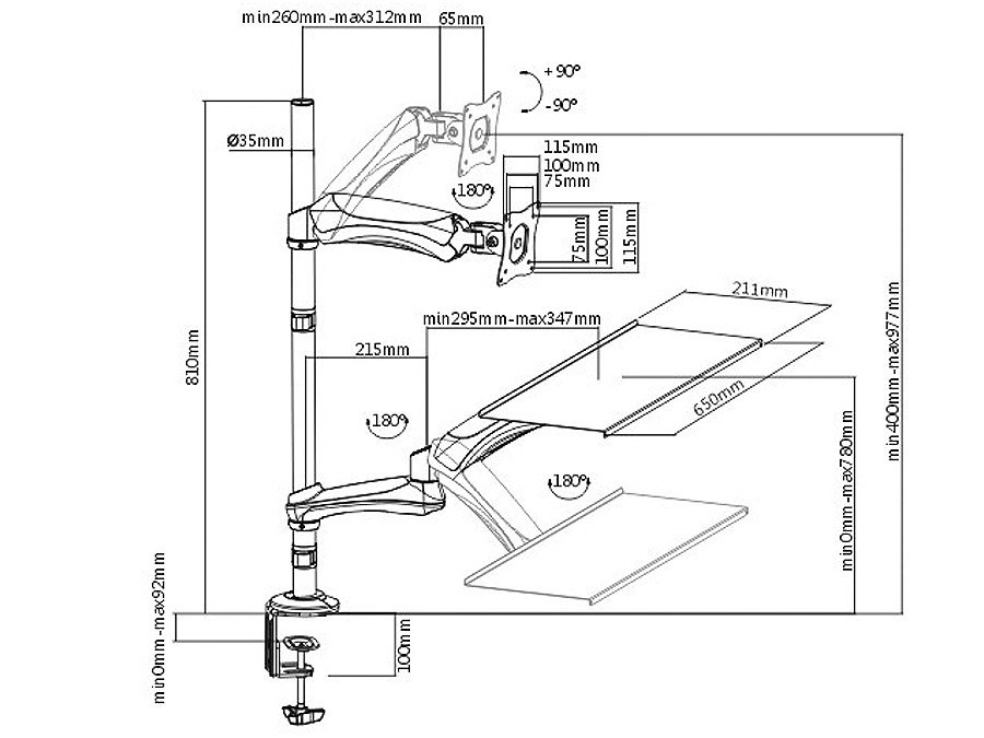 Stolní držák na monitor, klávesnici a myš Fiber Mounts M68C1 Kvalitní stolní držák na monitor, klávesnici i myš, který Vám umožní práci vsedě nebo vestoje Stolní držák, který Vám kdykoli umožní rychlou změnu nastavení tak, že můžete ihned začít pracovat vestoje. Držák umožňuje velmi rychlou změnu polohy výšky monitoru i police na klávesnici a myš. Sami si tak kdykoliv zvolíte, zda budete pracovat vsedě nebo vestoje. Držák umožňuje uchycení na kraj nebo kdekoli v prostoru stolové desky. Polohování je velmi snadné a rychlé, není potřeba žádné nářadí ani složité manipulace, nastavení do požadované polohy je otázkou pár vteřin. Pracovní stanice - stolní držák na monitor s policí na klávesnici a myš, obojí výškově polohovatelné, otáčení do stran, naklápění, TOP kvalita, snadná ovladatelnost - držák Fiber Mounts M68C1 Technické údaje: max. zatížení 9kg uchycení monitoru pomocí VESA standardu 75x75 nebo 100x100 doporučená úhlopříčka monitoru 13" až 32" polička na klávesnici a myš o rozměrech 650x211mm nastavitelná vzdálenost od středu nosníku jak monitoru, tak i police na klávesnici a myš rychlá změna pracovní výšky jak monitoru tak i police na klávesnici a myš umožňuje práci vsedě i vestoje rychlá změna pozice pro práci vsedě i vestoje bez použití nářadí 2 typy uchycení na stolovou desku - do kraje nebo kamkoliv do prostoru možnost nastavení monitoru do horizontální nebo vertikální polohy otáčení monitoru do stran bez omezení nastavení sklonu monitoru dle potřeby v úhlech až +/-90° otáčení klávesnice do stran bez omezení vynikající pracovní komfort výborná kvalita zpracování masivní hliníková konstrukce 2 typy uchycení na stolovou desku - do kraje nebo kamkoliv do prostoru barevné provedení černé záruka 3 roky Držák monitoru a klávesnice M68C1 podporuje VESA standardy: VESA 75x75 VESA 100x100 možnost zakoupení včetně nástavce VESA 200x100 a 100x200 možnost zakoupení včetně nástavce VESA 200x200 Držák M68C1 je vhodný pro zavěšení všech typů monitorů, které podporují VESA standard 75x75 nebo 100x100, mají hmotnost max. 9kg. Doporučená velikost monitoru 17-32". Stolní držák na monitor - výškově polohovatelný, otočný a sklopný + police na klávesnici s myší, výškově polohovatelná, otočná a sklopná - Fiber Mounts M68C1 2 typy uchycení na stolovou desku - na kraj stolu (bez vrtání) nebo kamkoliv do prostoru (nutné vyvrtat otvor na aretovací šroub). Polička na klávesnici s myší na stolním polohovatelném držáku Fiber Mounts M68C1 Umožňuje práci vestoje i vsedě - kdykoli snadno a rychle změníte pozici držáku dle vlastní potřeby, bez použití nářadí..