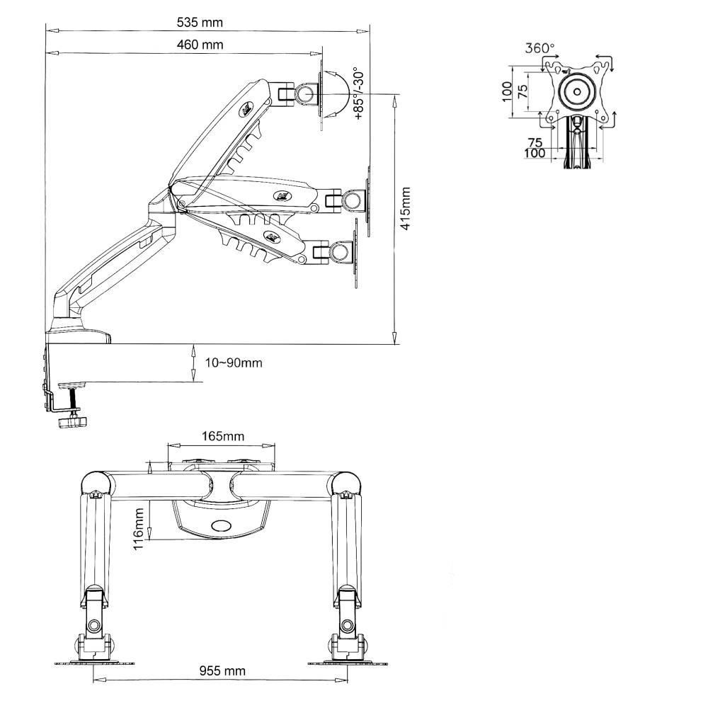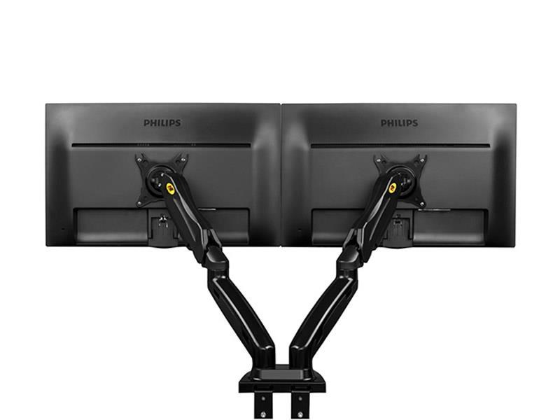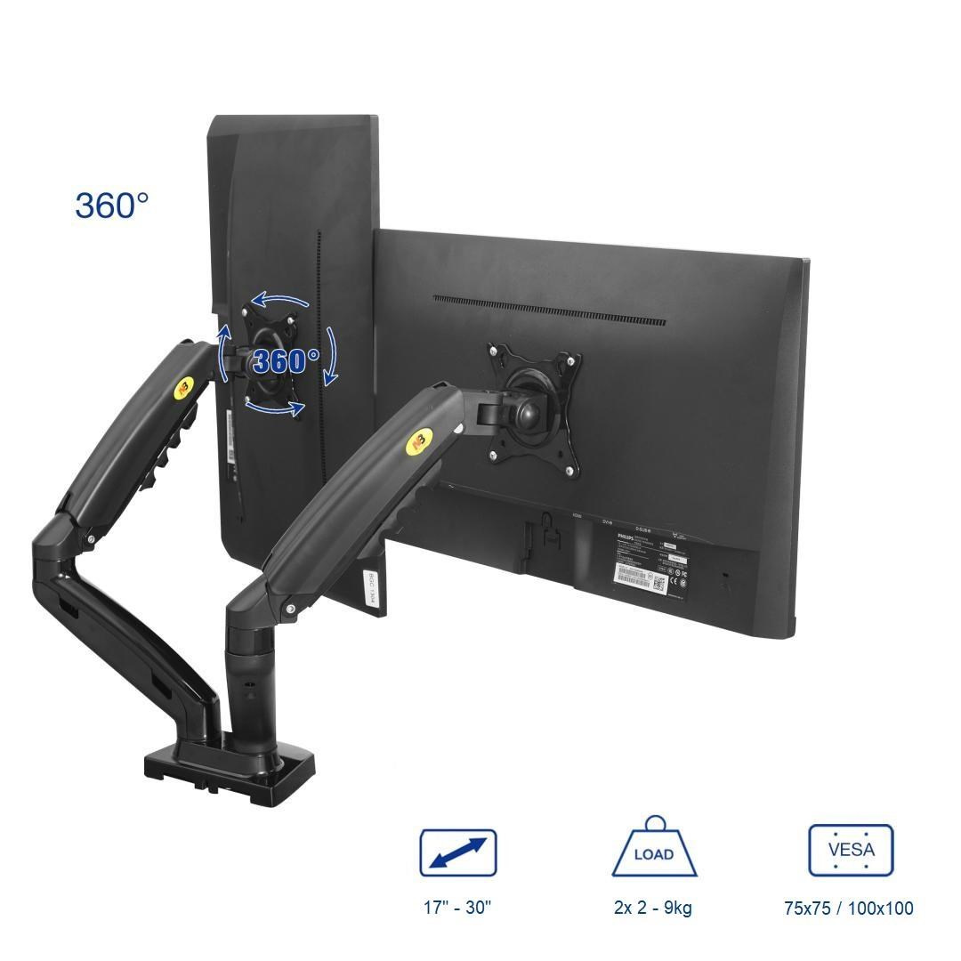 Stolní držák na 2 monitory displeje NB F160 Stolní držák na zavěšení 2 monitorů 17-30", nezávislé nastavení každého monitoru, výškové polohování 140-400mm, otáčení do stran +/-180°, naklápění +85°/-30°, vzdálenost od úchytu 0-530mm, pivot +/-360°, VESA 75x75 a 100x100, nosnost 18kg Vynikající stolní držák na monitory a menší televizory v profesionální kvalitě, krásném designu, s mnoha nadstandartními možnostmi nastavení. Otáčení obrazovky do stran, náklon nahoru i dole ve vysokém úhlu, nastavení vzdálenosti od uchycení, korekce roviny obrazovky, horizontální nebo vertikální otočení obrazovky, systém skrytého vedení kabeláže. Výškové nastavení až 400mm, výšková regulace 260mm - velmi snadná manipulace. To vše v unikátním designu. Držák má velmi odolnou a bezpečnou konstrukci a je vhodný i do velmi vytížených provozů, kde je potřeba neustálé manipulace. Stolní držák na 2 monitory NB F160 NB F160 kvalitní dvoumonitorový držák na stůl, polohovatelný Držák je díky možnosti plné nastavitelnosti, profesionální konstrukci a pěkného designu vhodný pro velmi široké spektrum využití. Doporučujeme jak do domácností, tak kanceláří, pracoven, školních tříd, nemocnic, call center, IT pracovišť, provozů a firem. Stolní multimonitorový držák NB F160 - nezávislé zavěšení 2 monitorů na stolní držákKancelářský stolní držák na 2 pc monitory v TOP kvalitě a designu - NB F160 Technické údaje: nosnost 18kg podporuje VESA standarty 75x75 a 100x100 doporučujeme na monitory a televizory s úhlopříčkou 17" až 30" otáčení na obě strany +180° až -180° nastavení výšky monitorů 140-400mm náklon monitorů +85°/-30° vzdálenost od stolního uchycení 0-530mm horizontální i vertikální otočení obrazovky - funkce pivot +/-360° systém pro vedení kabeláže profesionální držák vysoké kvality 2 typy uchycení na stolovou desku - na okraj nebo skrz stolovou desku 10-90mm záruka 5 let Kancelářský držák na dva monitory NB F160 Kvalitní polohovací držák na monitory do kanceláře NB F160 Kancelářský stolní držák NB F160 podporuje VESA standarty: VESA 75x75 VESA 100x100.