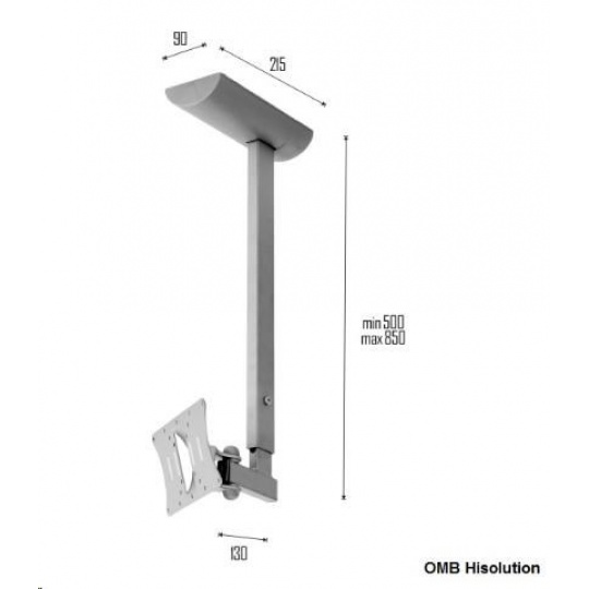 Držák pro zavěšení Tv a monitorů s úhlopříčkou 17-42" na strop, délkové nastavení Cenově dostupný stropní držák Tv nebo monitoru, který je výborného zpracování a kvality. Držák Vám umožní plnohodnotné nastavení pozice obrazovky: otáčení do stran, náklon nebo výškové polohování. Díky krytce je možné i ukotvení za sádrokartonový strop - průchod zakryjete. Kabeláž je možné vést vnitřkem držáku. Na výběr máte ze dvou barevných variant: černý nebo stříbrný. Držák podporuje VESA standardy 75x75 až 200x200, možné je za příplatek rozšíření VESA až na 400x400. Držák je vhodný na všechny typy televizorů i monitorů s hmotností do 20kg, doporučená úhlopříčka je 17-42", s rozšířeným VESA standardem až na 52". OMB Hisolution - stropní držák televize monitoru - originál od OMB Technické údaje: nosnost 20kg na televizory a monitory 17" až 42" sklopný nahoru i dole +20° / -20° otočný do stran +95° / -95° nastavitelná délka ramene 50-85cm vysoká kvalita zpracování možnost vedení kabeláže vnitřkem držáku krytka stropního uchycení barva černá nebo stříbrná záruka 2 roky Stropní držák na televizory a monitory OMB Hisolution černý Stropní držák Tv nebo monitoru OMB Hisolution podporuje VESA standardy: VESA 50x50 VESA 75x75 VESA 100x100 VESA 200x100 VESA 200x200 Při zakoupení rozšíření VESA standardu bude držák podporovat i VESA standardy: VESA 300x200 VESA 300x300 VESA 400x200 VESA 400x300 VESA 400x400 Držák je vhodný na všechny typy televizorů i monitorů, které mají hmotnost do 20kg a které podporují některý z výše uvedených VESA standardů v rozmezí 50x50 až 200x200, při zakoupení rozšíření podporují VESA až 400x400..