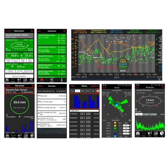 Meteorologická sada umožňuje pomocí bezdrátových čidel měření teploty, relativní vlhkosti, srážek a rychlosti a směru větru a přenos naměřených dat přes bránu a přes Váš router na Internet. Na Vašem mobilním zařízení s operačním systémem iOS 7 a novějším, nebo Android 3.2 a novějším pak můžete pomocí aplikace MOBILE-ALERTS naměřená data sledovat. Dále lze přidat další bezdrátová čidla. kdy maximální počet čidel, které je možné přihlásit k bráně je 50